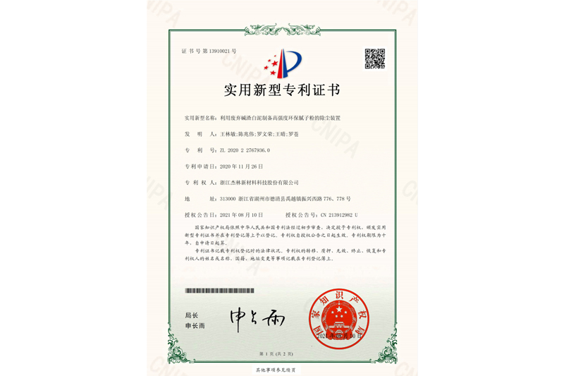 利用廢棄堿渣白泥制備高強度環保膩子粉的除塵裝置